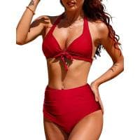 Na polskim Amazonie kupicie w promocyjnej cenie dwuczęściowy kostium kąpielowy z majtkami z wysokim stanem oraz biustonoszem push-up (darmowa dostawa Prime).
