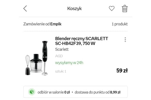 Bardzo fajna promka na blender ręczny z dodatkową końcówką do ubijania i pojemnikiem do siekania kupicie w Empiku (cena promocyjna przy zakupie poprzez aplikację).
