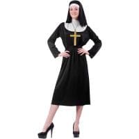 Zestaw zawiera sukienkę, pasek, nakrycie głowy i naszyjnik z krzyżem, tworząc kompletne przebranie na imprezy tematyczne, Halloween lub cosplay. Lekki materiał z poliestru jest wygodny w noszeniu, a klasyczny czarno-biały design sprawia, że kostium wyróżnia się na imprezie.