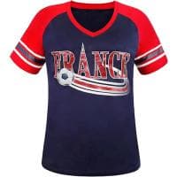 Sportowa koszulka z krótkim rękawem raglanowym i dekoltem w serek wyróżnia się błyszczącą grafiką inspirowaną piłką nożną. Bawełniany materiał zapewnia wygodę noszenia na co dzień lub podczas kibicowania. Lekki i wygodny model w bardzo dużej promocji.