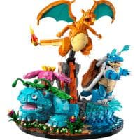 Ten wyjątkowy model składa się z aż 6838 elementów i przedstawia trzy ikoniczne pokémony w ich ostatecznych formach ewolucji, z pełną artykulacją umożliwiającą dynamiczne ustawienie do walki lub ekspozycji. Venusaur, Charizard i Blastoise mogą stać samodzielnie lub zostać umieszczone na łączonych podstawkach inspirowanych biotopami dżungli, wulkanu i plaży, tworząc efektowne pole bitwy.