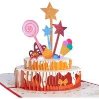 Rozkładana kartka urodzinowa typu pop-up z motywem tortu, wykonana z wysokiej jakości papieru i precyzyjnie wycinana laserowo. Po otwarciu tworzy trójwymiarowy efekt, który zaskakuje i zachwyca obdarowaną osobę. W zestawie znajduje się elegancka koperta oraz dodatkowa kartka na własne życzenia. Idealna jako samodzielny drobny prezent lub stylowy dodatek do większego upominku – dla kobiet i mężczyzn.