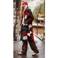 Długi krój z wysokim kołnierzem skutecznie chroni przed chłodem, a ściągacz w talii pozwala dopasować płaszcz do sylwetki i podkreślić jej proporcje. Pluszowa struktura zapewnia przyjemne ciepło, a oryginalny wzór sprawia, że model pełni rolę wyrazistego „statement piece”. Świetnie sprawdzi się zarówno w minimalistycznych stylizacjach, jak i jako główny akcent codziennego lub miejskiego looku.