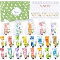 Ten rozbudowany zestaw zawiera 96 elementów: 24 mini kremy do rąk, 24 aloesowe maski do włosów, 24 siatkowe woreczki oraz 24 kartki z podziękowaniami, wszystko zapakowane w estetyczne, gotowe do wręczenia opakowanie. Kremy do rąk dostępne są w 12 zapachach (m.in. jagoda, awokado, lawenda, rumianek, grejpfrut, masło shea, róża czy kwiat wiśni) i skutecznie nawilżają suche dłonie, szybko się wchłaniając i pozostawiając skórę miękką oraz gładką. Maski do włosów z aloesem intensywnie regenerują suche i zniszczone pasma, wygładzają je, poprawiają połysk i ułatwiają rozczesywanie. Podróżne rozmiary sprawiają, że produkty idealnie mieszczą się w torebce, plecaku czy szufladzie w biurze, a naturalne składniki czynią je bezpiecznymi dla skóry i włosów. To doskonały wybór na Boże Narodzenie, urodziny, wieczór panieński lub drobne prezenty dla większej grupy osób.